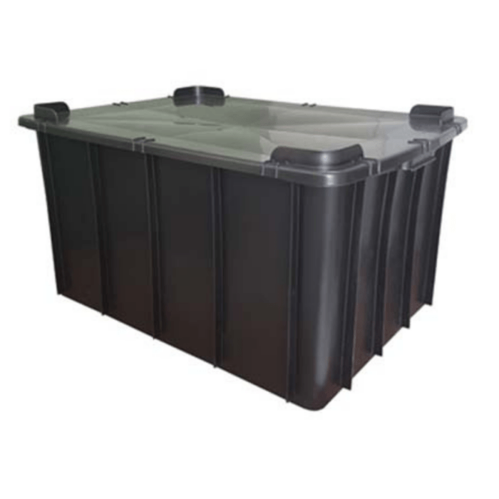 Caixa plástica fechada e com Tampa, 130 Litros  fabricada em máquinas de alta tecnologia com materiais do mais alto padrão de qualidade – Polipropileno (PP) ou Polietileno de Alta Densidade (PEAD) – nas cores preta, branca e azul.