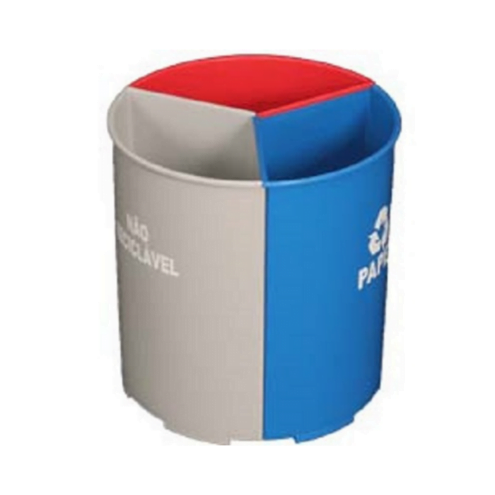 Sendo 03 recipientes com 08 litros cada, podendo ser nas cores: Amarelo , Azul, Cinza ,Laranja , Marrom , Verde, Vermelho.